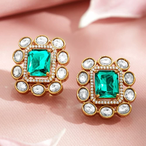 These earrings are absolutely beautiful with vibrant green gemstones and sparkling crystal accents. The design feels elegant, luxurious, and perfect for adding a refined touch to any outfit.