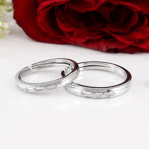 These couple rings look elegant and meaningful with their sleek silver design and subtle sparkle. Perfect for expressing love, they feel stylish, comfortable, and ideal for everyday wear.