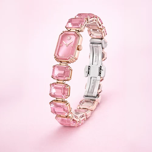 This pink crystal watch is stunning and feminine. The sparkling stones and elegant design make it a perfect statement accessory, adding glamour and charm to any outfit